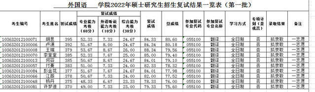 外国语学院2022年硕士研究生招生复试结果一览表(第一批)