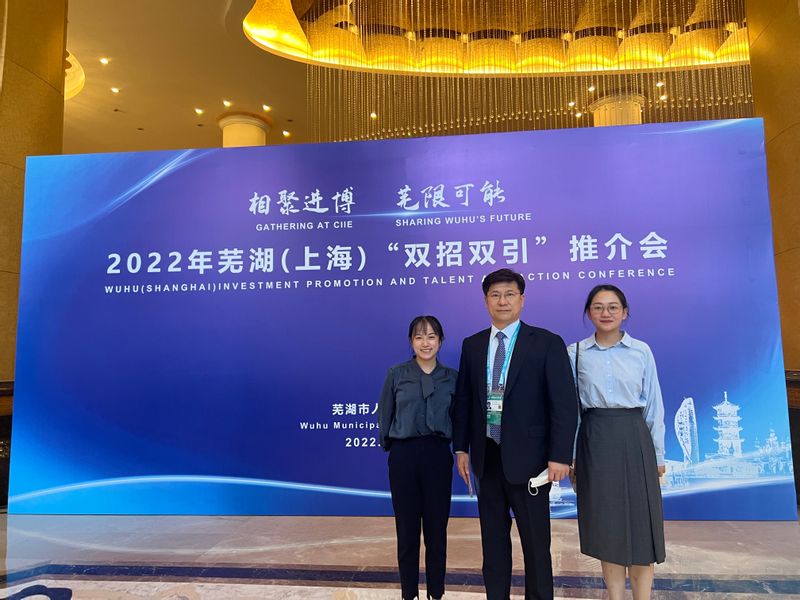 2022年11月7日下午,受芜湖市政府外事办邀请,外国语学院派遣21级翻译硕士李贺雪同学参加了由政府主办、市投资促进中心承办的2022年芜湖(上海)“双招双引”推介会翻译实践活动。