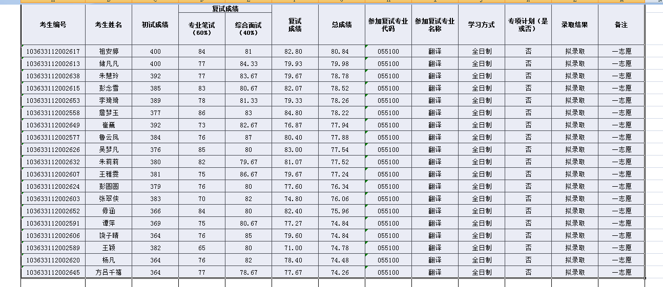 外国语学院2023年硕士研究生招生复试结果一览表(第一批)
