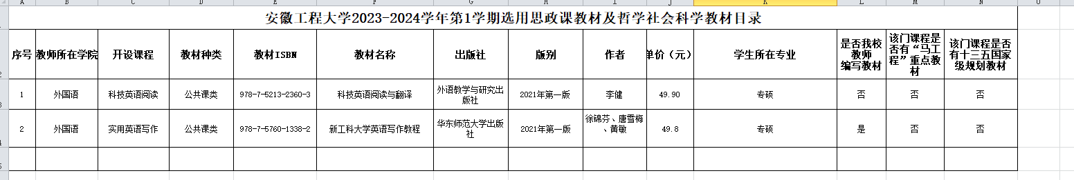 根据学校《RayBetApp官网下载 教材管理办法》要求,经课程组提出选用申请,学院审核,马克思主义理论和思想政治教育方面的专家审查,学院党委会审议、党政联席会议审定,现将2023-2024学年第1学期专硕教材选用情况公示如下: