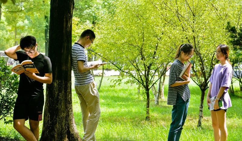 秋雨过后,天气转凉,清风徐来,绿荫树下,三五成群,举书共读,交流着学习的困惑和趣闻。