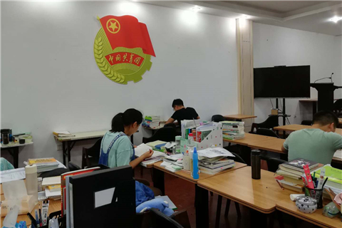 团徽在墙上熠熠生辉,青年学子在桌前“秉烛苦学”。在团徽的指引下,你们争做考研大军的先锋队!