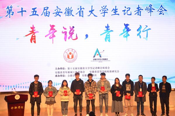 11月11日,由安徽省大学生记者峰会组委会、安徽省青年新闻工作者协会和安徽省高等学校校报研究会联合主办,合肥学院、安徽青年报社承办的第十五届安徽省大学生记者峰会在合肥学院南艳湖校区举行。在峰会上,我校共斩获“十佳校园记者”“好新闻奖”“主题征文奖”3类5项奖项。