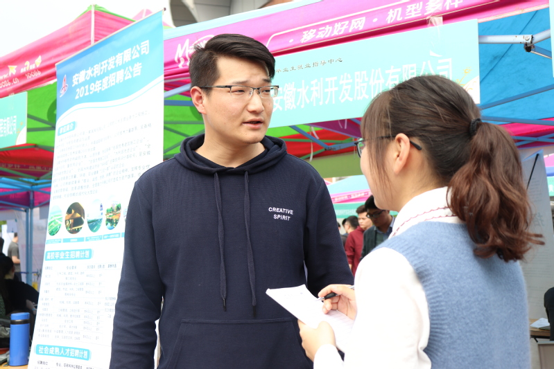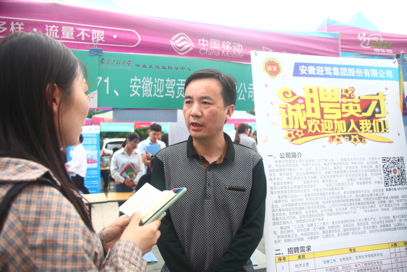 安徽迎驾贡酒有限公司相关负责人唐久炉表示,专业对口是企业和人才的双赢之策,学生在校期间一定要记住“以专业为本”。毕业生如何从“校园小白”蜕变为“职场精英”,就此问题中国十七冶集团有限公司招聘负责人程攀认为:“踏实肯干、吃苦耐劳的工作态度是职业能力提升的有效路径。毕业生应从小事做起,从基层做起,不断突破,提升自我。”此外,在“大众创业,万众创新”的氛围下,安徽水利开发股份有限公司的吴伟建议先就业再择业创业,他认为具有专业技能的稳定型人才创业的成功率会极大提升,在校期间可以在项目上实践,在活动中历练,为创业打好基础。