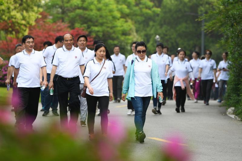 四月芬芳,草长莺飞。4月24日下午,由校工会、体育学院、校团委联合主办的“壮丽70年 阔步新时代”徒步走活动在雕塑公园举行。在校党委书记刘宁,校党委副书记、副校长王绍武,校党委副书记苏国红、副校长郭兴众的带领下,近900名教职工齐聚雕塑公园,以积极的精神迎接新时代,开展全程5.6公里的徒步走活动。