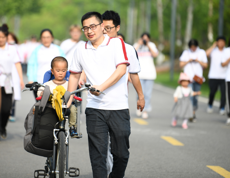 活动现场,教职工们热情高涨,情绪饱满,在行进中享受着沿途的自然风光和清新的空气,分享各自的生活经验,探讨平日的工作心得。继续教育学院教师曾央央作为一名孕妇,首次参与了徒步走活动。她认为,徒步走展现了一种积极向上的精神状态,不管是作为一名准妈妈,还是一名教职工,都应该用积极的状态去迎接生活。财务处杨智会和管理工程学院丁一协两位老师同他们的孩子共同参与了本次活动,他们表示,平时的工作比较繁忙,这次活动给他们提供了一个和同事、家人交流的机会,有利于身心放松。电气学院的倪天明老师刚刚参加完学院的青年教师教学竞赛就赶到了活动现场,他说,学校工会组织的活动丰富多彩,让像我一样的年轻教师感受到组织的温暖,也有了很强烈的归属感、获得感和幸福感。