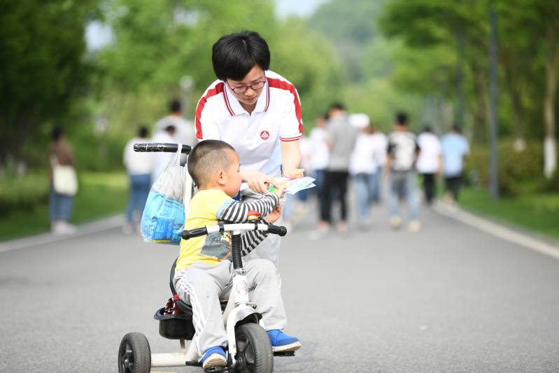 随着郭兴众打响发令枪,徒步活动正式开始。此次徒步活动的起点设在了公园南门,沿着公园环线道路绕神山一周后折返回到校园北门的终点站。全程共设四个服务点,老师们需从四个服务点领取由学生志愿者发放的健身主题色卡一张,并于终点处交还。历经激烈角逐,来自机械学院的潘道远老师率先到达终点。历时一个多小时,所有参与人员到达终点,本次活动圆满结束。