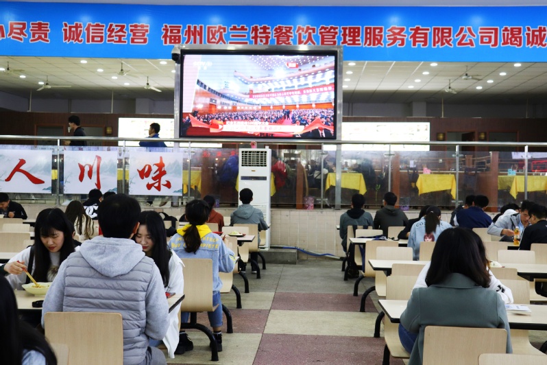 学生在食堂收听收看