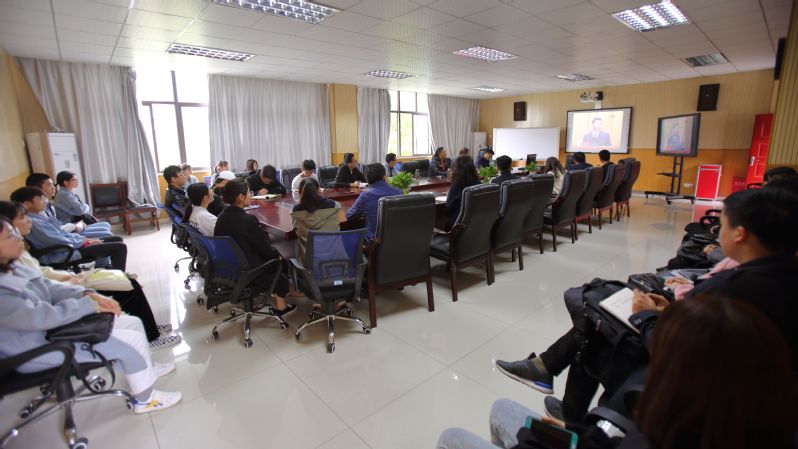 辅导员和学生代表在A座1121会议室收听收看