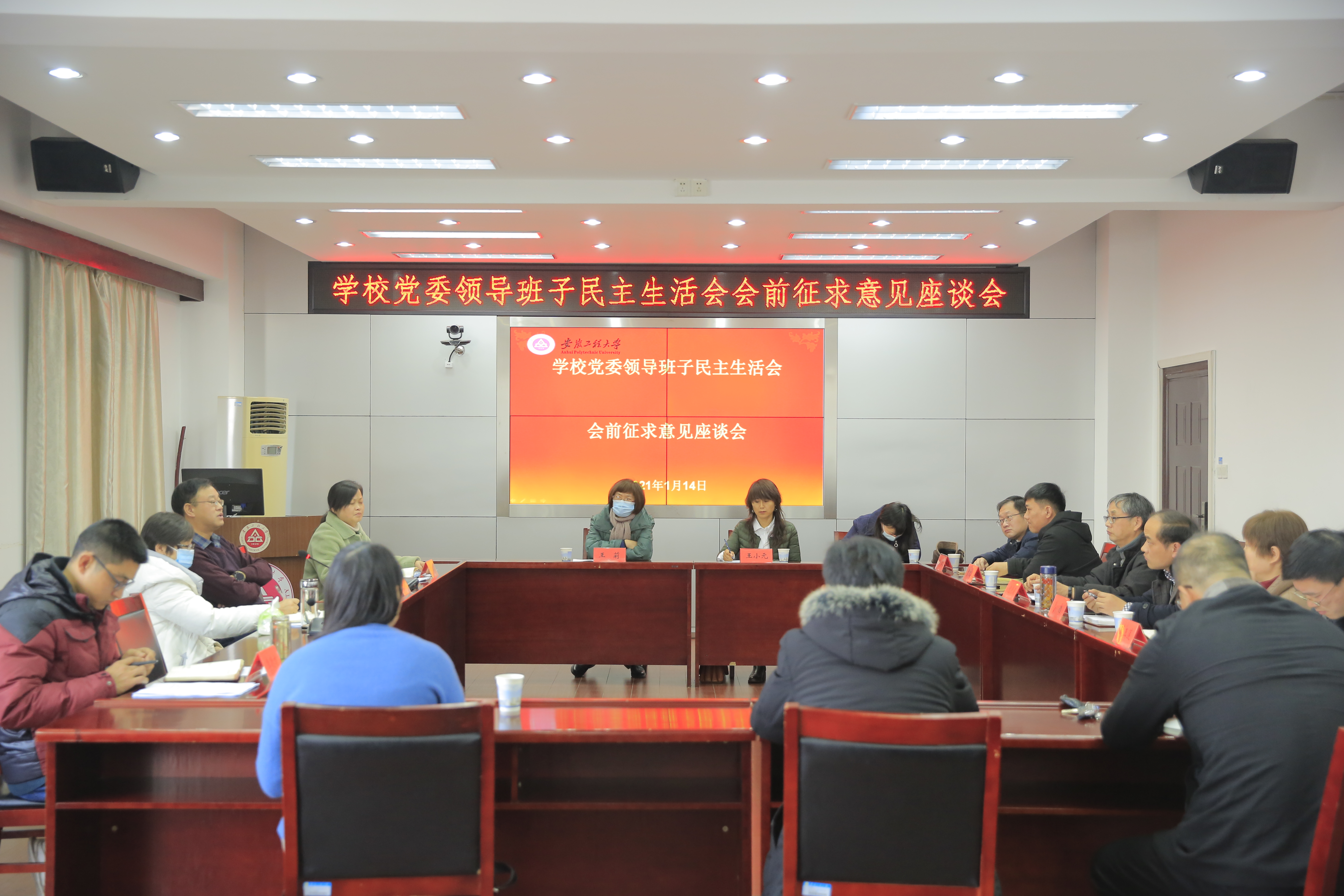 本网讯1月14日下午,学校党外人士学习《中国共产党统一战线工作条例》暨党委领导班子民主生活会会前征求意见座谈会在行政楼1121会议室召开,校党委副书记苏国红,副校长叶常林,宣传部(统战部)负责人,校级民主党派基层组织负责人,校知联会负责人,省、市、区人大代表、政协委员代表出席会议。会议由苏国红主持。