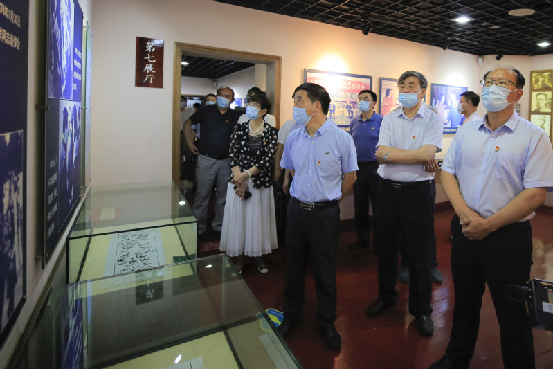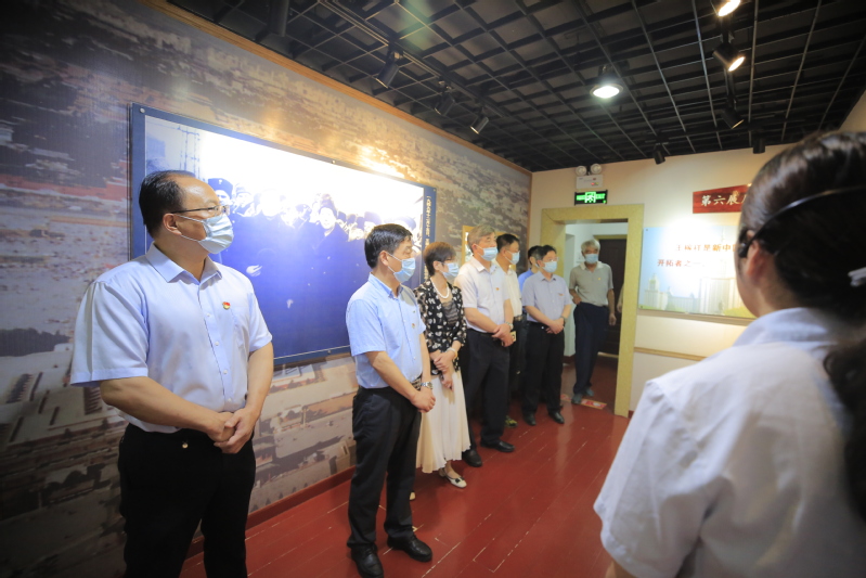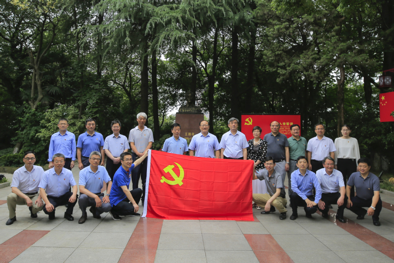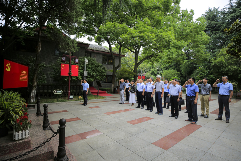 在主题实践活动中,刘新跃一行与校党委理论学习中心组成员一起瞻仰了王稼祥铜像,参观了王稼祥生平陈列馆。刘宁带领全体党员重温入党誓词。