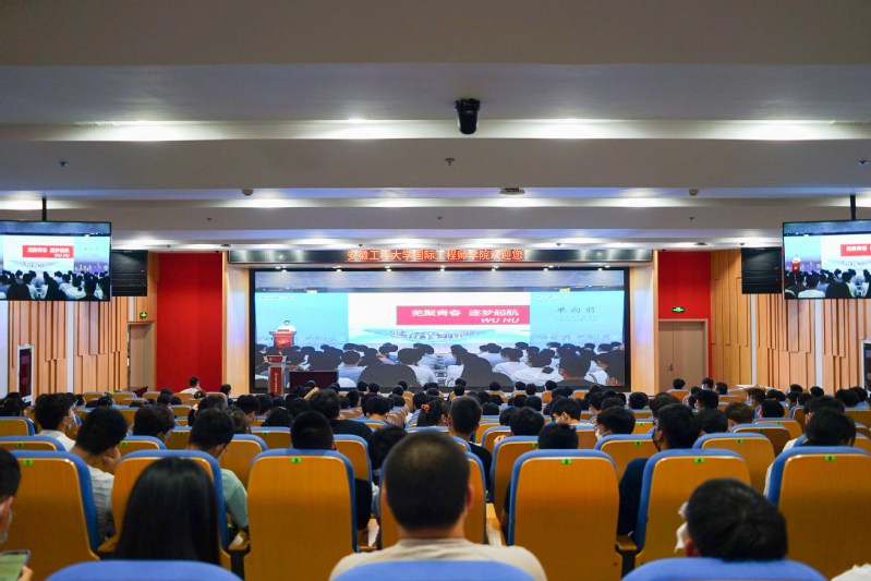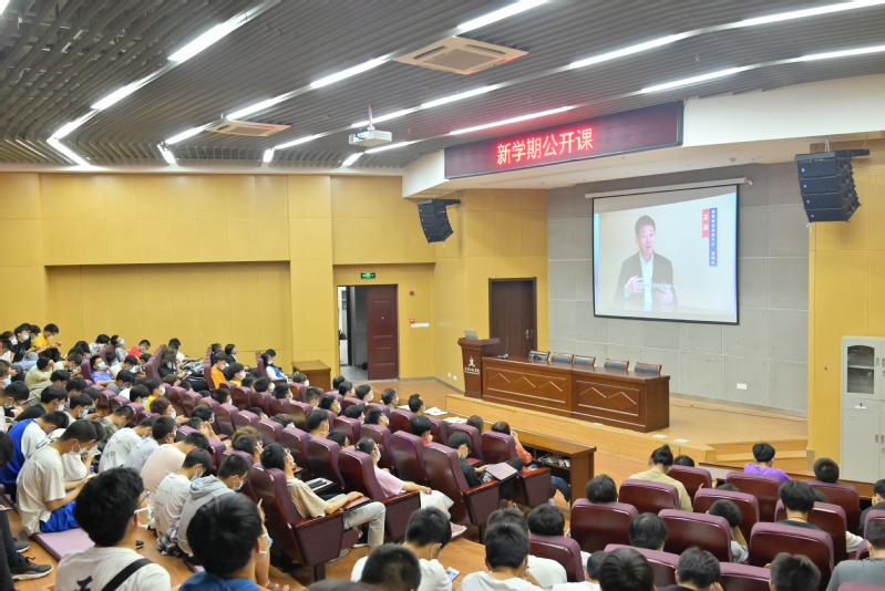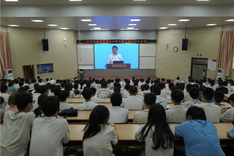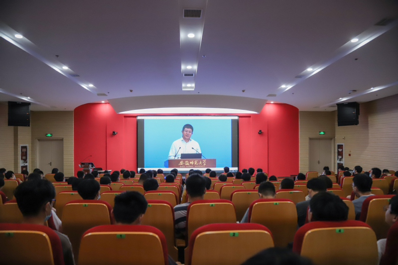 本网讯 9月29日由中共芜湖市委、市人民政府主办,芜湖市委组织部(市人才办)、宣传部、人社局、教育局、人才发展集团共同承办的“紫云英花开 芜湖等你来”新学期公开课开讲,主课堂设在安徽师范大学花津校区实习实训中心一楼报告厅,本次公开课由芜湖市委书记、市人大常委会主任单向前担任主讲。在芜各高校、中职(技工)学校、市外芜湖市高校人才工作站所在高校设线上分课堂,20余万在芜大学生通过线上线下共上新学期公开课。我校设立分会场,各二级党组织和各学生组织在多个报告厅和教室收听收看了直播。校党委副书记、校长王绍武,校党委副书记苏国红,校党委常委、副校长郑健在2教报告厅分会场收听收看。