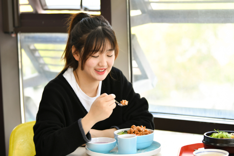 与三两好友围坐在桌前,望着“新鲜出炉”冒着热气的火锅,便觉得一天的疲惫也随着那热气慢慢消散。生物制药213班的褚恒同学说:“疫情当前,虽然无法去校外吃火锅聚餐,但松庐餐厅的‘简易版’火锅同样是一个极佳的选择。”松庐餐厅的火锅品种齐全,排骨火锅、牛肉火锅、鱼头火锅……货真价实的食材配上色泽浓郁的锅底,几片翠绿的蒜叶加以点缀,火锅中的各式配菜都包裹着满满的汤汁,盛出一碗,顿时浓香四溢。
