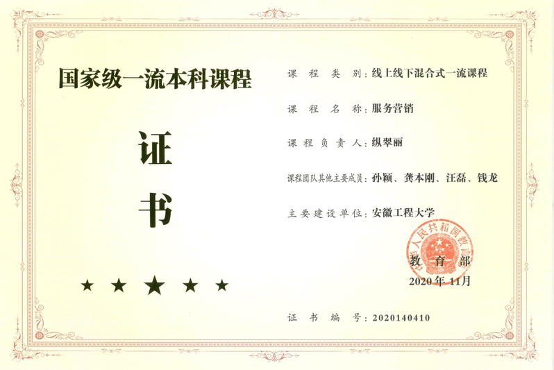 本网讯纵翠丽,副教授,经济与管理学院市场营销系教师,主讲课程《服务营销》《品牌管理》《营销策划》,首批国家级线上线下混合式一流本科课程负责人,获得首届全国高校教师教学创新大赛全国三等奖、安徽省“智慧课堂教学之星”、安徽省“同课异构”教学竞赛二等奖、安徽省“停课不停学”在线教学优秀案例二等奖等,并获得校课程思政教学名师、先进个人等多项荣誉称号。