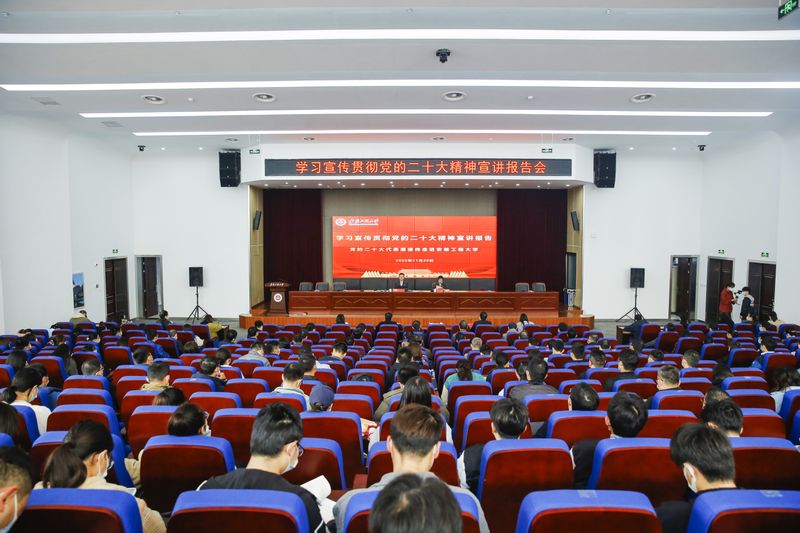 校有关职能部门负责人,二级党组织书记,党的二十大精神宣讲团、博士宣讲团成员,生物与食品工程学院、经济与管理学院师生代表,宣传部党支部全体党员参加会议。