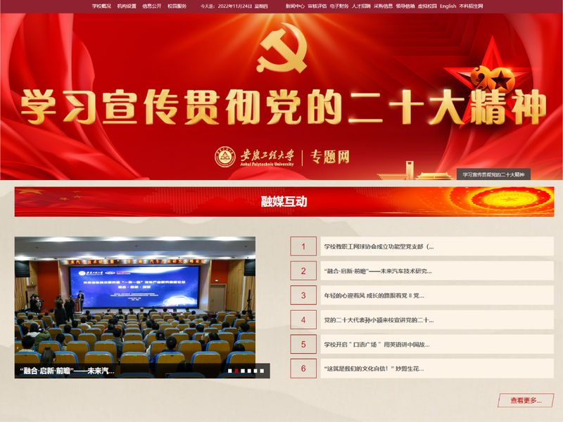 2.学校学习宣传贯彻党的二十大精神专题网站“融媒互动”专栏。