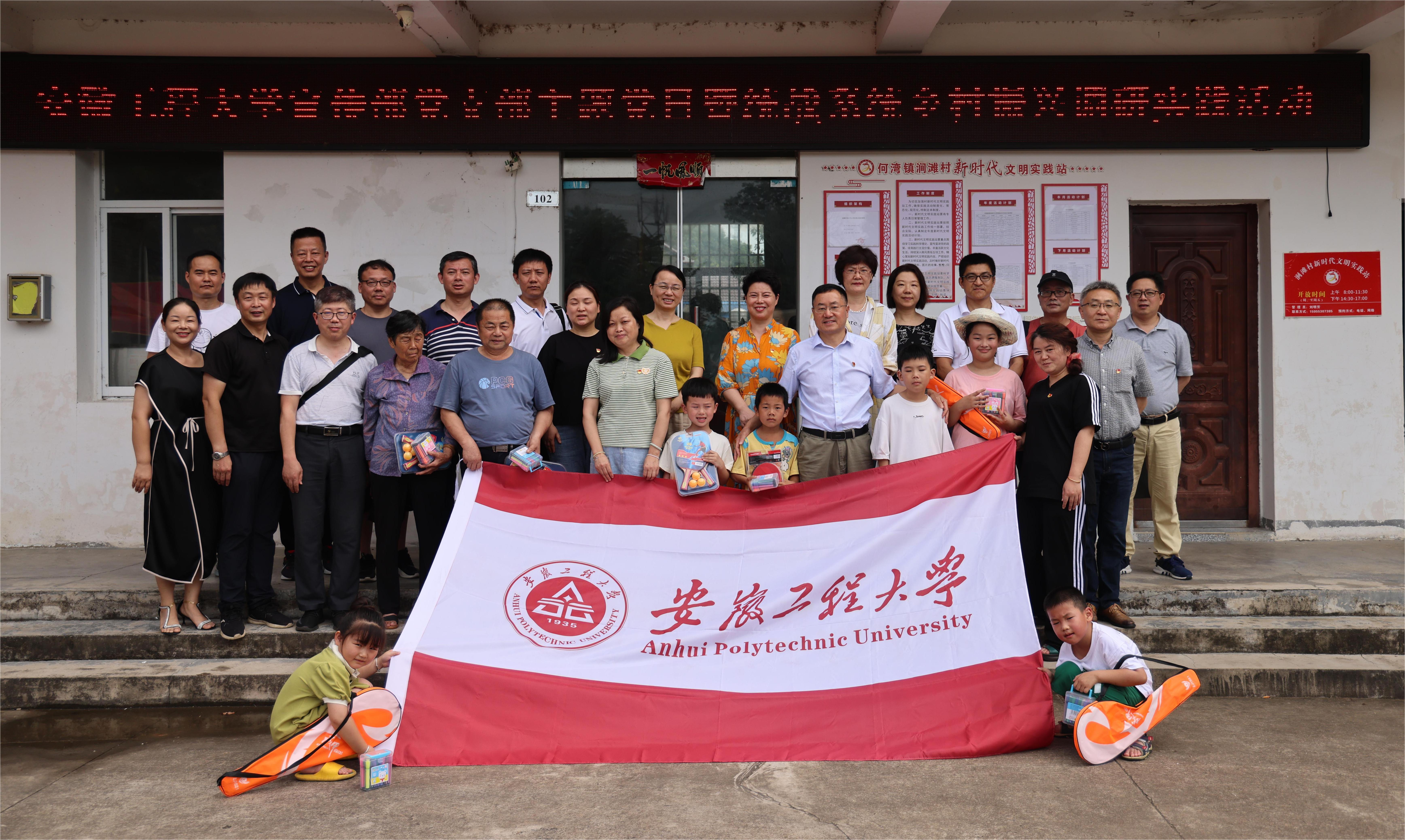 在南陵县何湾镇涧滩村调研组向驻村工作队赠送了理论书籍,向小学生们赠送了体育和学习用品等。
