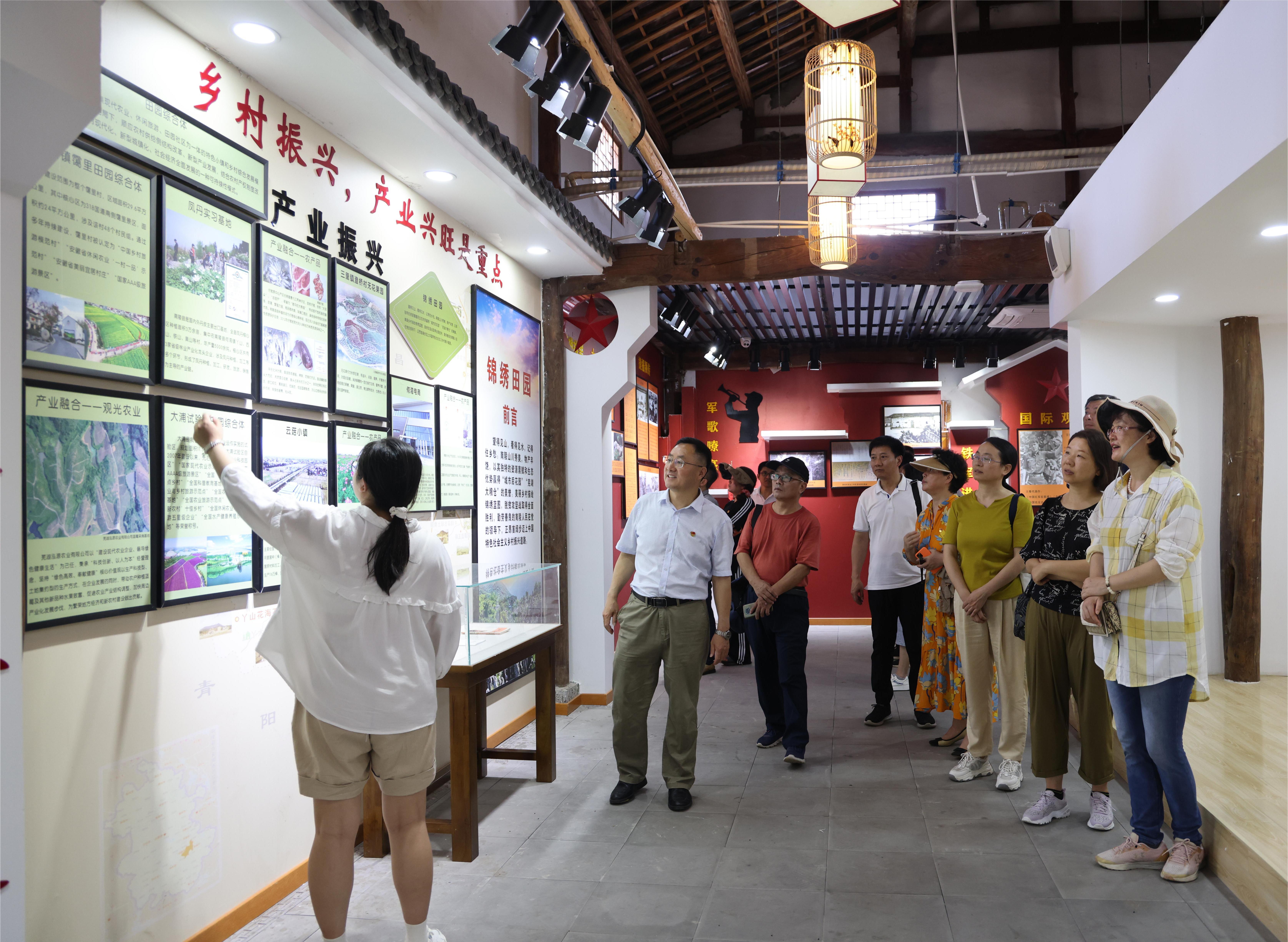 在何湾镇龙山书院,“中国好人”龙山村第一书记胡太平带领大家参观了村史馆,进行了交流座谈。他详细介绍了龙山村的发展历程,得益于党的好政策,龙山村从穷乡僻壤转变为美丽乡村,着眼乡村建设、重视基层工作、助推产业振兴,三管齐下走出了乡村振兴新路径。