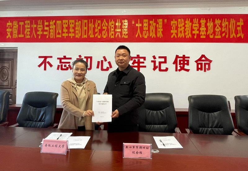 本网讯为深入贯彻落实习近平总书记关于“大思政课”的重要指示批示精神和教育部等十部门印发的《全面推进“大思政课”建设的工作方案》,12月8日,我校与新四军军部旧址纪念馆共建的“大思政课”实践教学基地签约仪式在泾县新四军军部旧址纪念馆举行。我校马克思主义学院相关负责人、思政课教师代表参加签约仪式。签约仪式由新四军军部旧址纪念馆馆长翟光云主持。