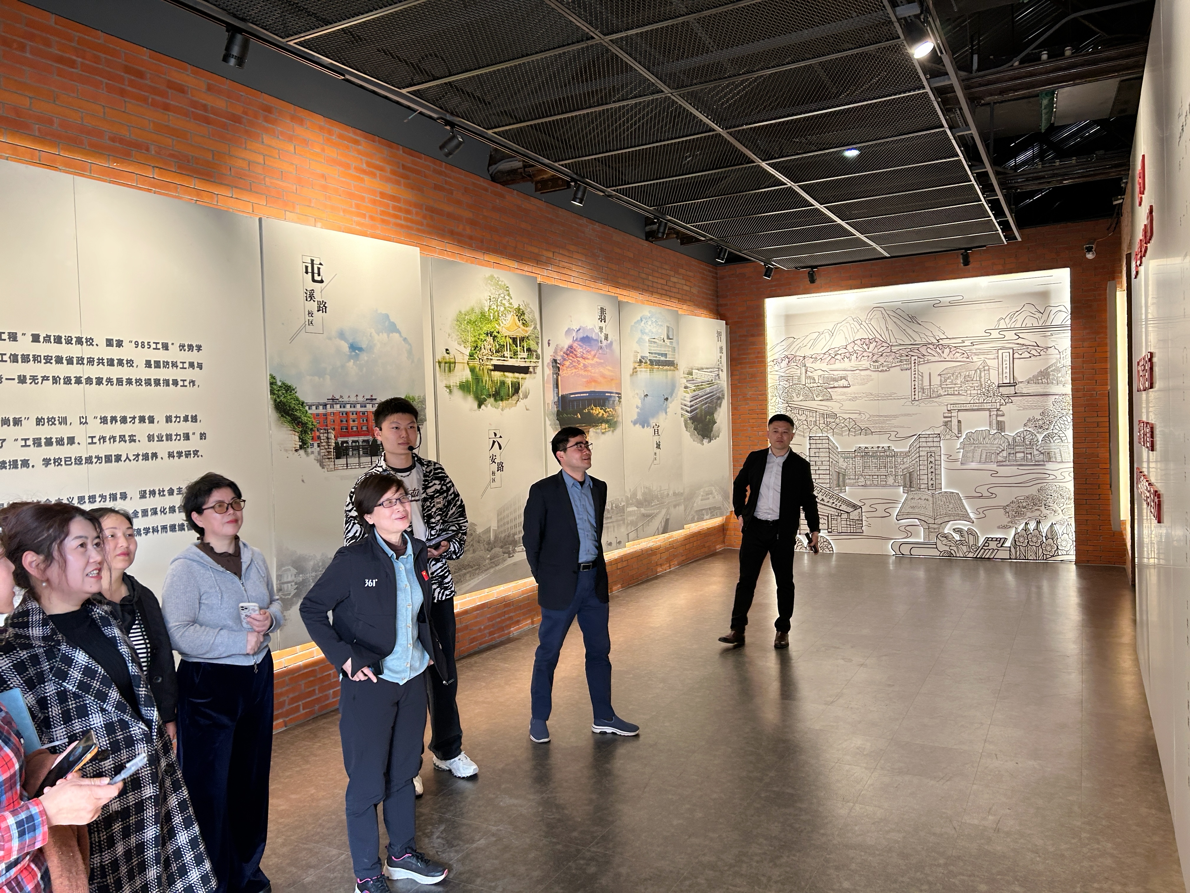 在合肥工业大学,双方就校史馆专班建立、校史资料收集、校歌创作等具体工作进行座谈,并实地参观了校史馆。
