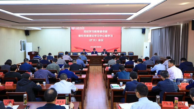 本网讯5月8日,学校召开党纪学习教育读书班暨校党委理论学习中心组学习(扩大)会议,校领导,校党委理论学习中心组成员,二级党组织、各学院、各部门主要负责人参加会议,会议由校党委副书记、校长卢平主持。