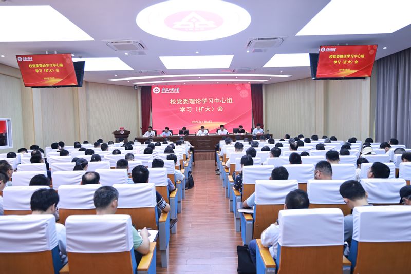 本网讯7月4日,学校在A座104会议室召开校党委理论学习中心组(扩大)会议,校领导、校党委理论学习中心组成员、全体处级干部参加会议,会议由校党委书记张志宏主持。