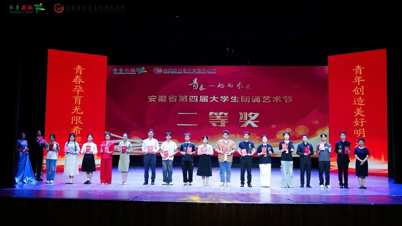 9月18日至9月19日,由中共安徽省委宣传部、中共安徽省委教育工委主办,安徽艺术学院承办的“青春,一起向未来”安徽省第四届大学生朗诵艺术节在安徽艺术学院举行。由我校宣传部、人文学院推报的作品《等待》受邀进行现场表演并荣获二等奖。