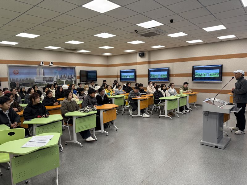 周毅仁从摄影构图、拍摄选景等方面为切入点,告知大家拍摄学校风景、地标、建筑、人物等艺术摄影作品时所需的拍摄角度,人物位置,比例关系等方面的问题,如何完整地反映图片内容,向大家传达图片的信息,呈现学校优美的文化景观。他以多年的拍摄经验分享了提升摄影技艺的方法,第一是多拍,通过不断地拍照去练习和研究图片的摄影技巧;第二是多看,多去欣赏一些新闻媒体平台的摄影作品,学习思考专业摄影人士的构图与审美;第三是多读,多去读一些摄影理论基础的书籍,因为只有以科学的理论基础为指导才可以提高实践水平。