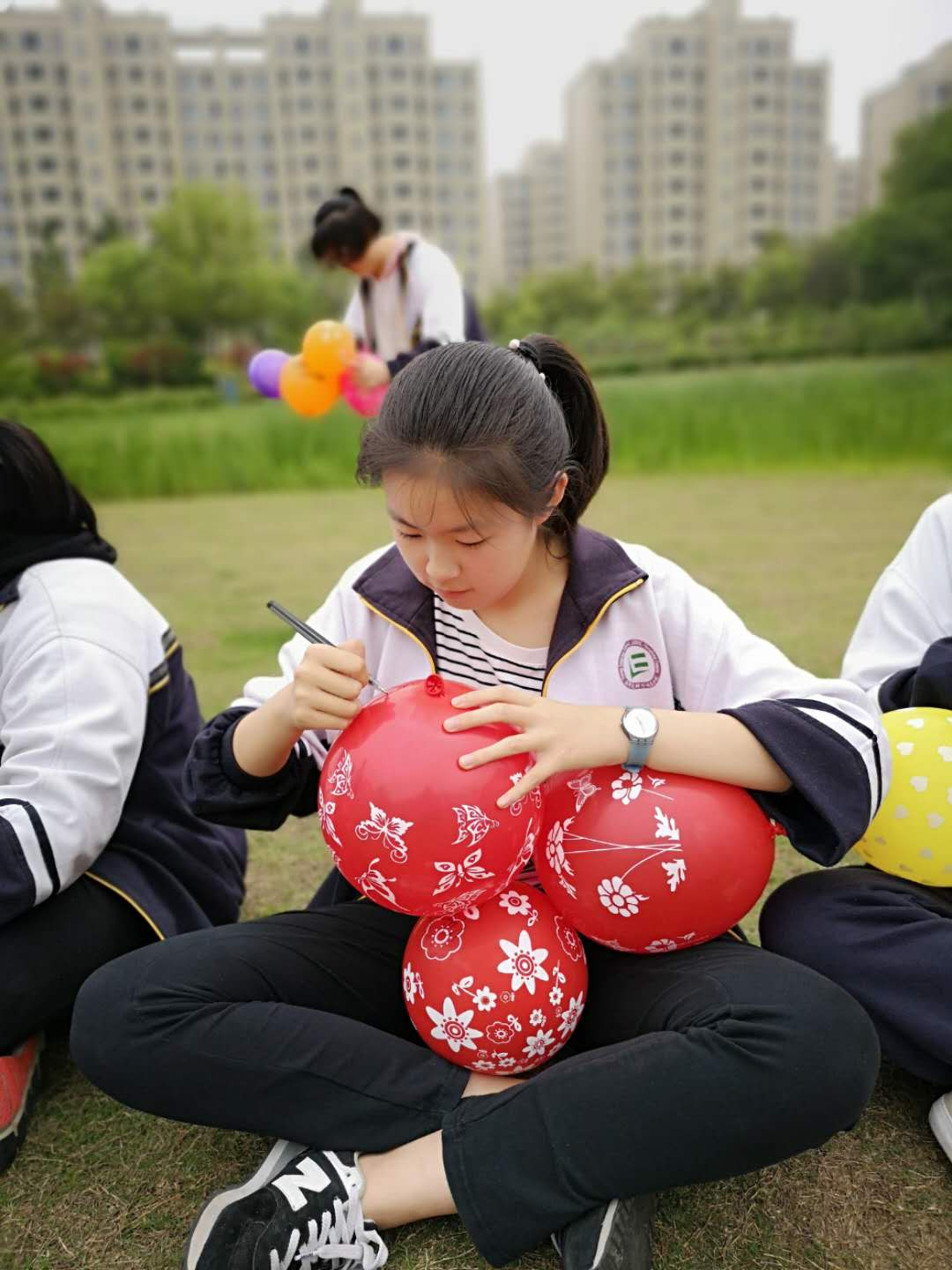 本次活动由支部党员老师和马列班成员代表担任主训。在趣味游戏“超出我想”和“球行千里”环节,通过体验参与的同学们知道每个人的潜力都是无穷的,不断失败仍努力将球运至终点的女生队让大家感受到了坚持与团结的力量;在“释放烦恼”环节大家用马克笔写在气球写下自己的烦恼,随着“砰砰”的爆炸声,烦恼也随之消散。最后班主任以丝带传情的方式将自己最真诚的祝福送给全体同学,动情的泪水是这场师生情谊的最美写照。