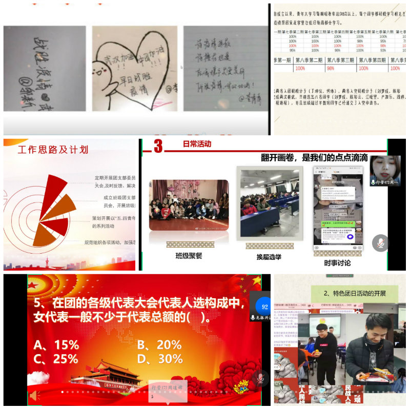 人文学院活力团支部风采大赛决赛于5月3日下午两点在线上召开。本次比赛邀请管理工程学院俞家辉,生物与化学工程学院凌佳欢,纺织服装学院宋雅玲以及数理学院倪蜀婷担任评委。人文学院团委书记谢红翠和院团委副书记、辅导员严煌老师观看比赛。 本次比赛以“展青年风采,唱时代新声”为主题。在初赛中脱颖而出的十个团支部分别从视频展示、支部建设、荣誉成就等方面来展现支部的独特风采,条理清晰,面面俱到。而在特色知识竞答环节中,各团支部代表人思维敏捷,发言踊跃,将比赛的气氛推向高潮。比赛最后,由老师及各位评委进行点评,对每个队伍的出色表现表示肯定,并提出了建设性的修改建议,希望同学们再接再厉,再创辉煌。