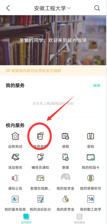 在“校内服务”点击“信息收集”