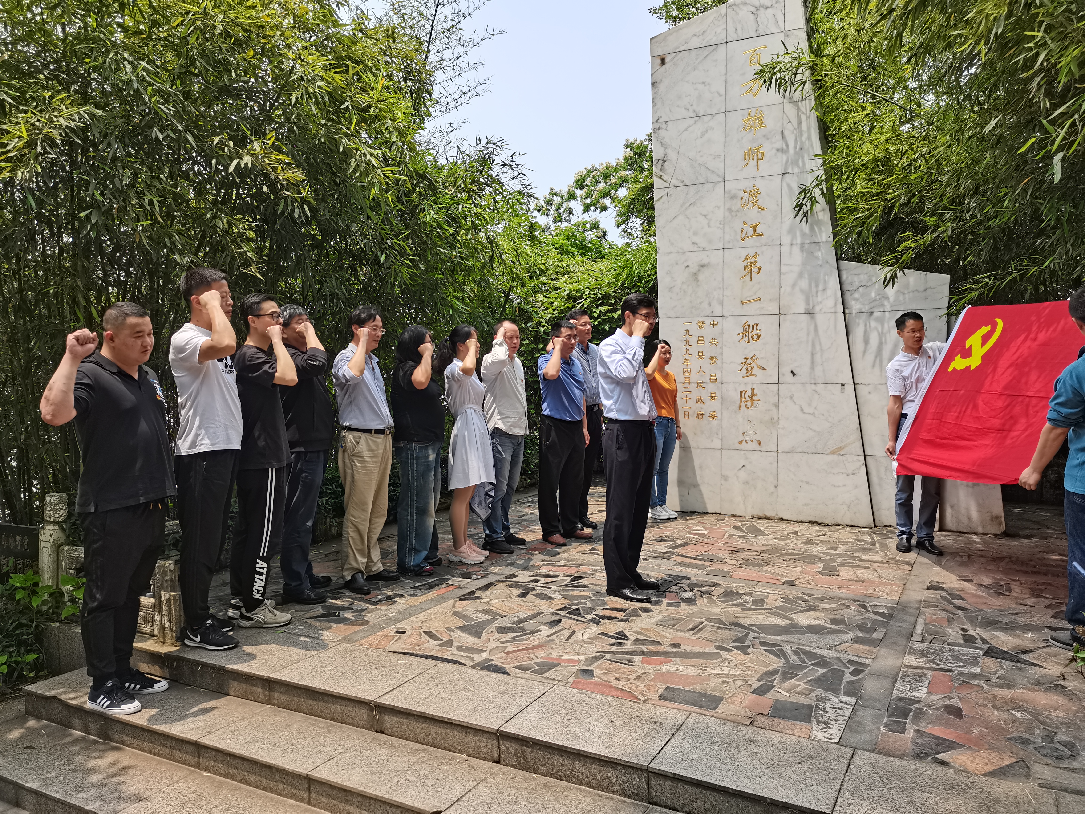 参观过程中,在“百万雄师渡江第一船登陆点”的纪念石碑前,全体党员面对鲜艳的党旗庄严宣誓,一起重温了入党誓词。 |