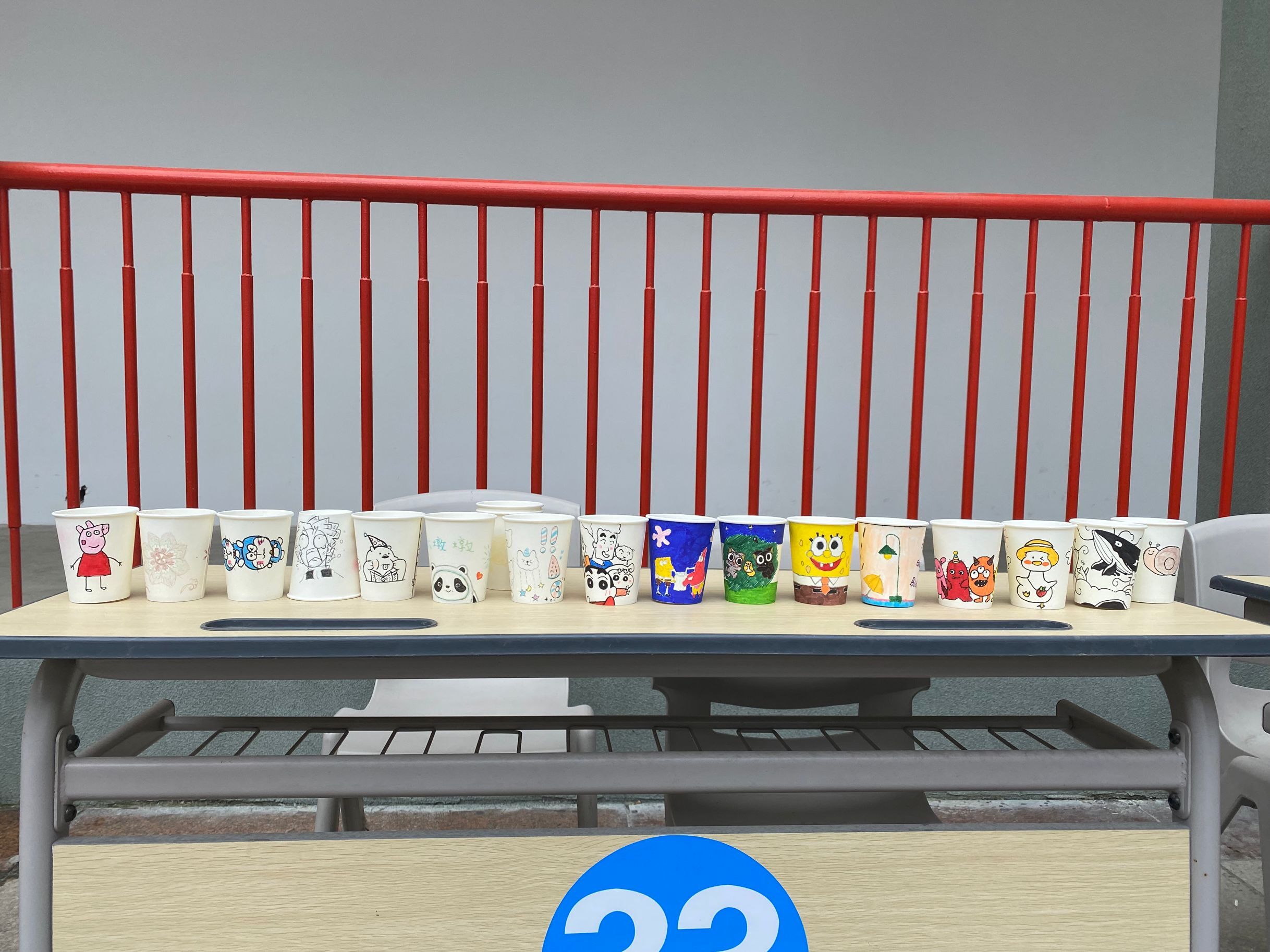参与者充分发挥想象,拿起彩笔在白色纸杯上肆意挥洒灵感。“这些涂鸦太有创意了!平日里不起眼的小纸杯,没想到我们学校会画画、有创意的学生这么多!”面对这些创意作品,路过的学生对创作者啧啧称赞。