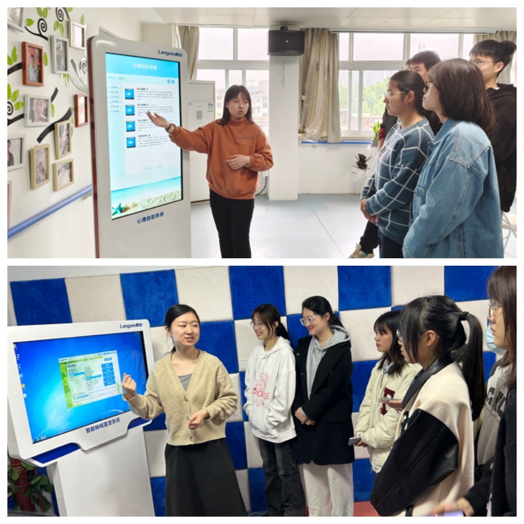 心理健康教育中心老师向同学们介绍了个体咨询室、团体辅导室、宣泄解压室、音乐放松室、沙盘活动室、心理测量室等特色心理功能体验室,并耐心讲解心理健康知识,增强同学们对心理健康的理解和认知。首先,李梦菊老师向同学们介绍中心的心理自助系统,告诉同学们当大家遇到一些基本心理问题或困惑如何借助该系统进行自我疏导。随后带领同学们在宣泄解压室体验了解智能呐喊宣泄系统以及击打宣泄设施的使用,同时向同学们科普如何宣泄不良情绪缓解压力的方法。在音乐放松室,同学们体验了心理音乐反馈系统,该系统利用音乐声波引起的生理反应,良性地提高大脑皮层的协调性,缓解心理压力,配合多功能放松椅,舒缓肌肉,减压催眠。沙盘活动室李老师带领同学们在沙盘摆放与分享过程中,利用沙盘、沙子、玩具模型等玩起了游戏,用分角色游戏的方式讲述了沙盘游戏的操作关键和要领,通过系列沙盘游戏,同学们心灵深处得到了关注,开启了治愈之旅。心理测量室同学们了解如何利用专业的心理测评量表,通过科学、客观、标准的测量手段对人的特定素质进行测量、分析和评价。同学们在放松愉悦的氛围中自主体验各项设施,结束了本次体验活动。