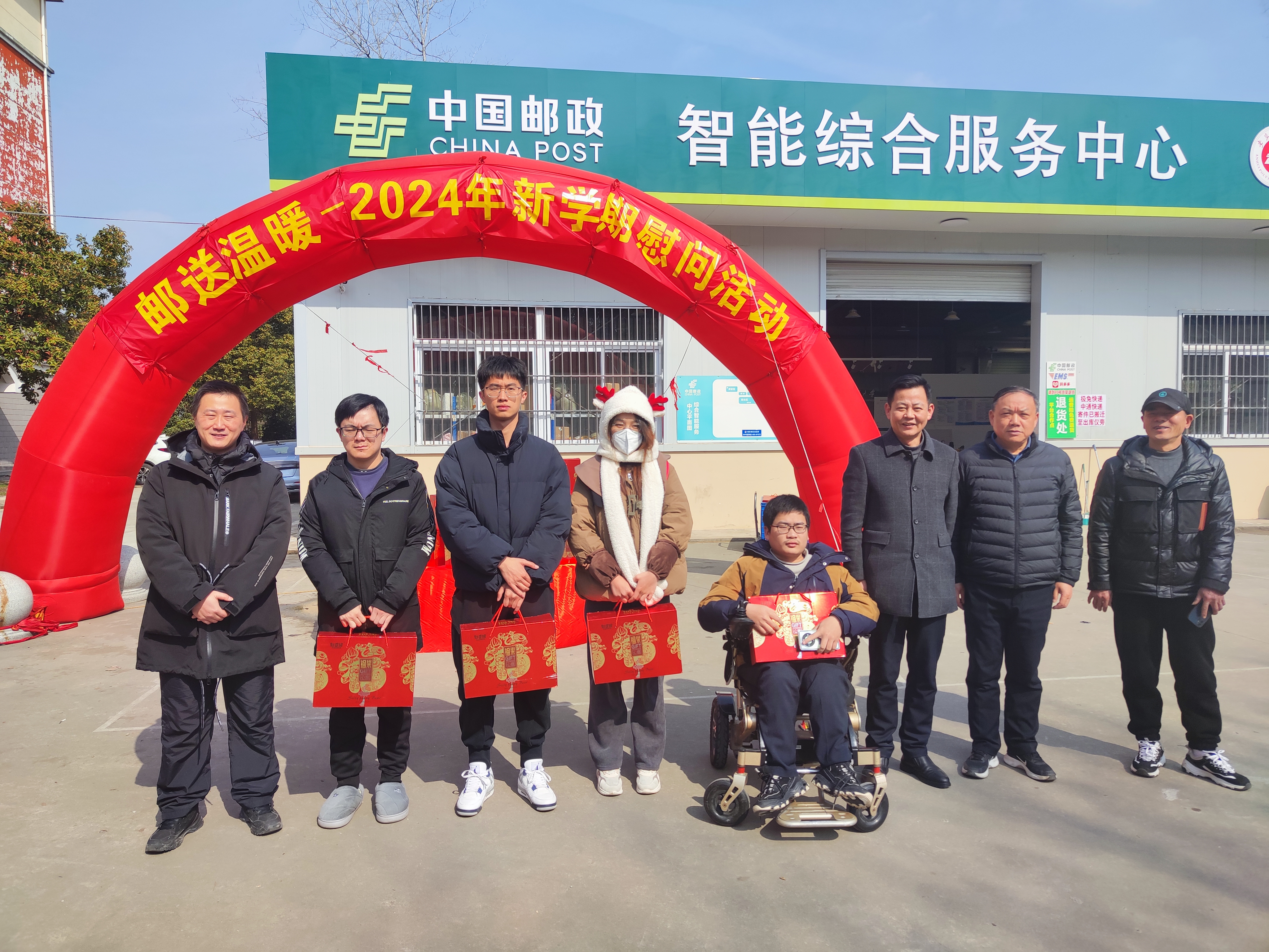 在2024年新学期来临之际,为传递学校对大学生的勉励和关爱,确保每一位学生在校安心学习和生活,校学生处和邮政智能服务中心于2月27日联合举办“邮送温暖——2024年新学期慰问活动”,学生处副处长杜松涛、后勤保障处副处长卢学根、芜湖邮政城南分公司负责人姚怀军以及各学院23年国家奖学金获得者和家庭经济困难学生代表参加了此次慰问活动。