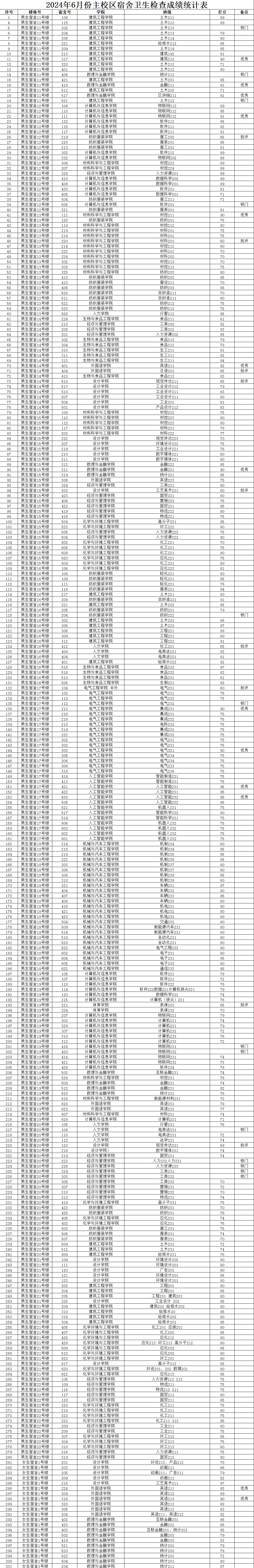 2024年6月份主校区宿舍卫生检查成绩统计表