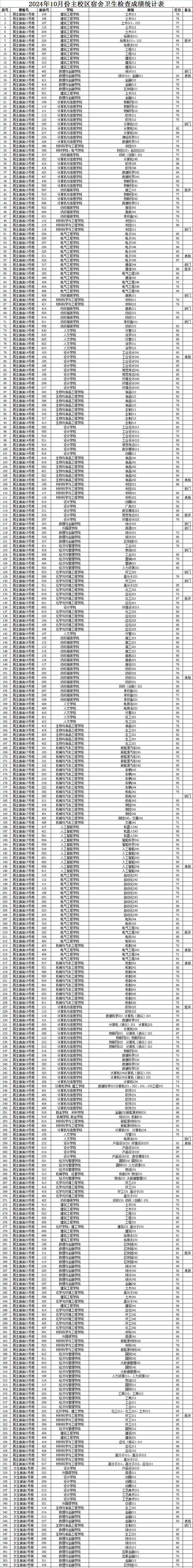 2024年10月份主校区宿舍卫生检查成绩统计表