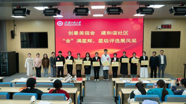 11月13日,学校2023-2024学年“星级宿舍”标兵现场评审工作成功举办,学生处负责人,教务处、保卫处、后勤保障处、国际工程师学院管委会、辅导员和学生代表参加此次活动。 经过学院申报,学校多部门联合复核,最终12个学院的16间宿舍进入最终现场评审环节。评审现场同学分别从宿舍成员风采、学业学风、“三全六专”育人实践、宿舍文化建设、宿舍特色等多个维度展示本宿舍风采。男生20栋323宿舍以“六尺巷”故事中的传统美德为基础为自己宿舍制定了“学风尺、实践尺、环境尺、职业尺、服务尺、风貌尺”新六尺标准,并以《践行“六尺”精神,共建标兵宿舍》为题阐释了宿舍在践行过程中的收获和取得的成绩。女生13栋505宿舍以《五朵金花齐追梦,六专路上共成长》为主题,通过宿舍成员在“正学壮乐勤和”上的实践展示了宿舍积极向上的精神面貌和文明和谐的宿舍氛围。最终经过现场评委老师评选共10间宿舍获得2023-2024学年“星级宿舍”标兵荣誉称号。