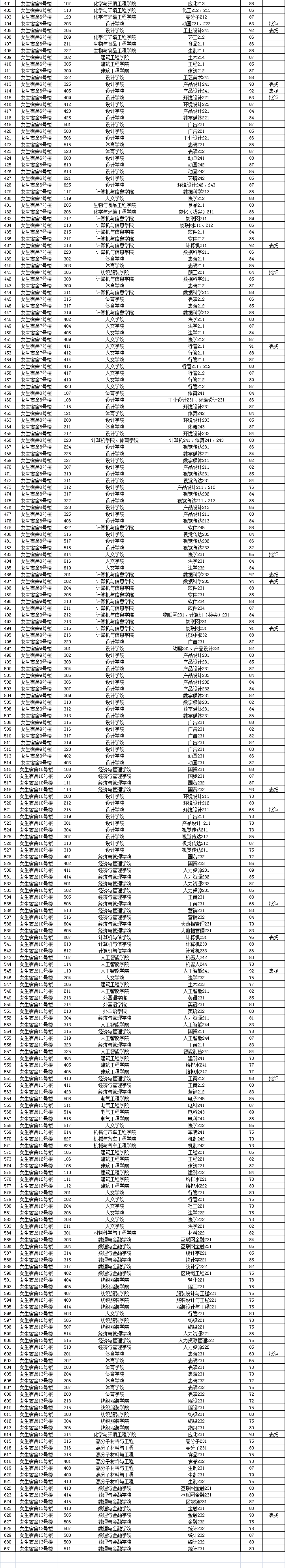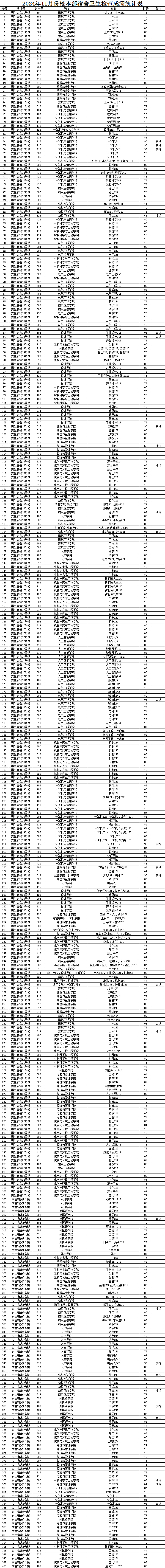 2024年11月份校本部宿舍卫生检查成绩统计表