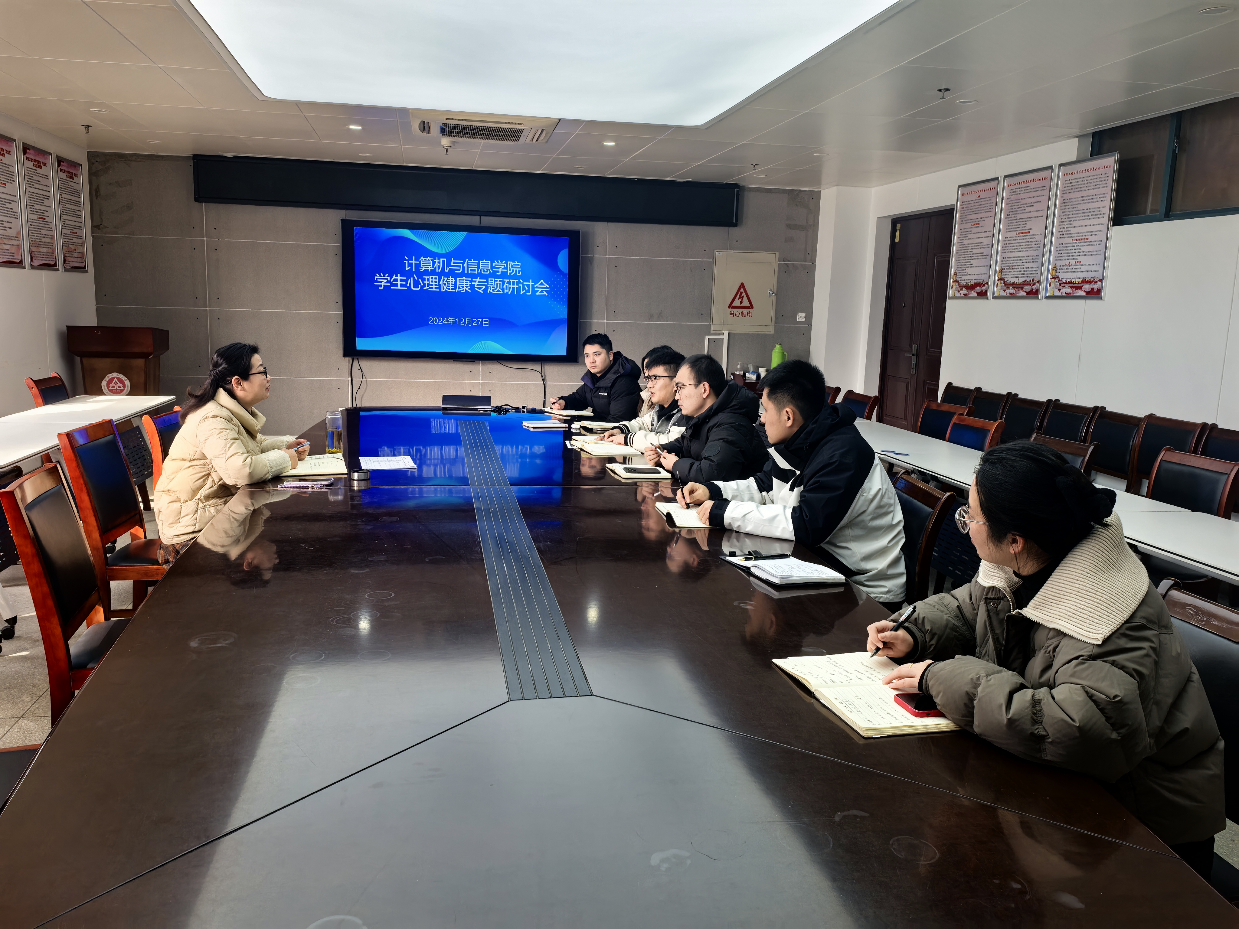 为进一步落实学校“三全六专”育人实践,推动学院心理健康工作,提高大学生心理健康工作的针对性和实效性,扎牢学生安全工作,12月27日上午,计算机与信息学院在C座622会议室召开学生心理健康工作专题研讨会,学院党委副书记孙德茹,全体辅导员参加会议。 会上,孙德茹强调辅导员要密切关注学生各类动态,牢牢掌握学生心理状态并持续关注。现阶段要重点关注学生考研后的心理变化和学生期末因学业压力等因素诱发的心理波动,要未雨绸缪,发现问题及时干预,疏解学生压力。各位辅导员汇报了自己重点关注学生的心理状况,分享了工作中的经验做法,并就进一步完善心理帮扶措施展开讨论,落实专人跟进重点学生情况,力求全方位保障学生心理健康。