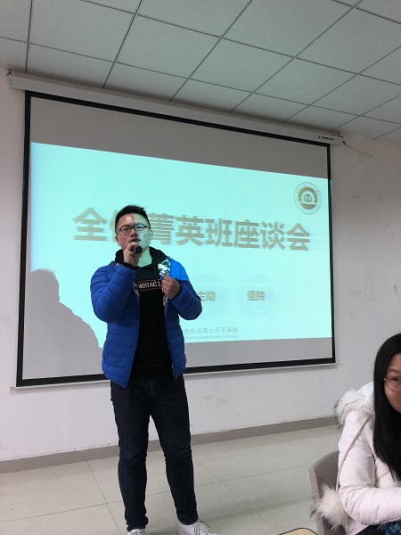 通过这次活动,不仅增强了一期二期三期之间传承的关系,更让我们认识到了菁英班取得的成绩是需要每一期每一个人的努力,需要的是一个集体的凝聚力。苏书记和张处长的一席话让我明白了菁英班存在的意义,菁英班并不是为了考研而办的培训班,而是让自身成长的一个班级,同时也希望我们要有自己的梦想,要有强校梦和强国梦,年轻人要有自己的想法,要学会折腾,不怕折腾,不图安逸!