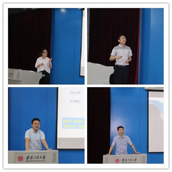 四位辅导员代表就近期外出参加培训作分享和交流。计算机与信息学院辅导员苑雨露分享了“高校辅导员队伍建设与工作能力提升”高级研修班的学习收获,解读了《普通高等学校学生管理规定》(41号令)和《普通高等学校辅导员队伍建设规定》(43号令),介绍了大学生自杀高危人群的识别与干预技术和精神卫生法背景下大学生心理危机干预面临的困惑和挑战。电气工程学院辅导员陶涛围绕“新时代高校网络思想政治工作”这一主题,结合自身实际工作进行阐述,为辅导员不断加强和改进思想政治教育工作的方式、方法提供了有效途径,也为新时代高校网络思想政治教育提供了新思路、新方法,简介了“徽程研路”的运行情况。艺术学院辅导员臧亚平分享了“全国高校思想政治工作创新”培训班的主要内容:以十九大精神为指引,如何做好新时代高校思政工作、新时代思想政治教育的新形势和新使命、辅导员专业素养与科研能力提升等。外国语学院辅导员张君就“杭州KAB创业教育项目师资培训”的主要内容做交流,重点介绍了KAB创业教育3E精彩课堂教学设计实训的教学设计理念、方法和实践,以及使用该方法存在的局限性。