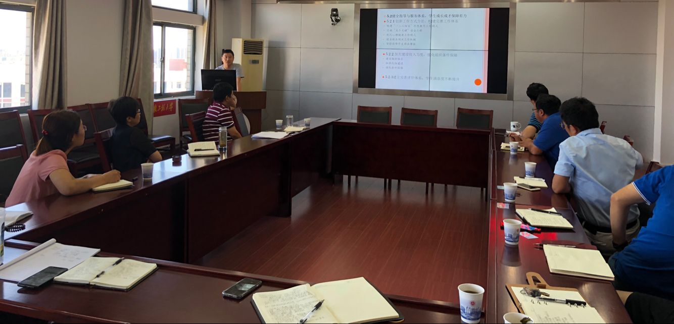 为了进一步统一思想、凝聚共识,做好新形势下学生工作,学生处处长张开炳通报了今后五年学生工作设想,并指出,当前要全力配合做好审核评估工作,加强思考和创新,主动作为,强化协同。副处长李卫东围绕“全国创新创业典型经验高校”指标体系,介绍了就业创业工作现状及今后工作重点。副处长胡家增在总结暑期工作的基础上,对做好新学期工作提出了想法和要求。