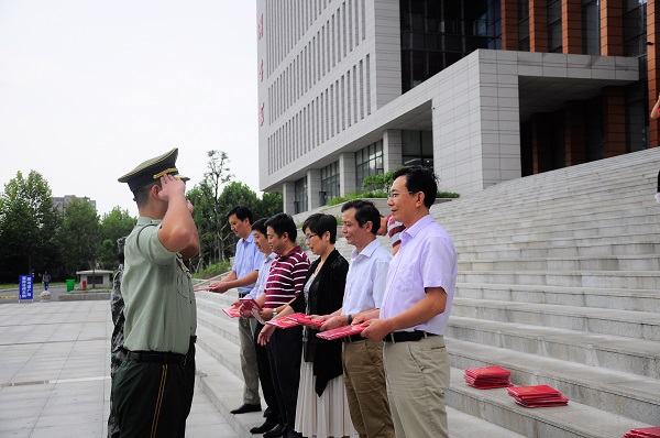 9月28日下午,学校在新图书馆广场举行2018级军训教导大队授旗及新生军训学生教官聘任仪式。校党委副书记苏国红,校学工部、教务处、武装部、校团委负责人出席,仪式由学工部部长、军训旅政委张开炳主持。