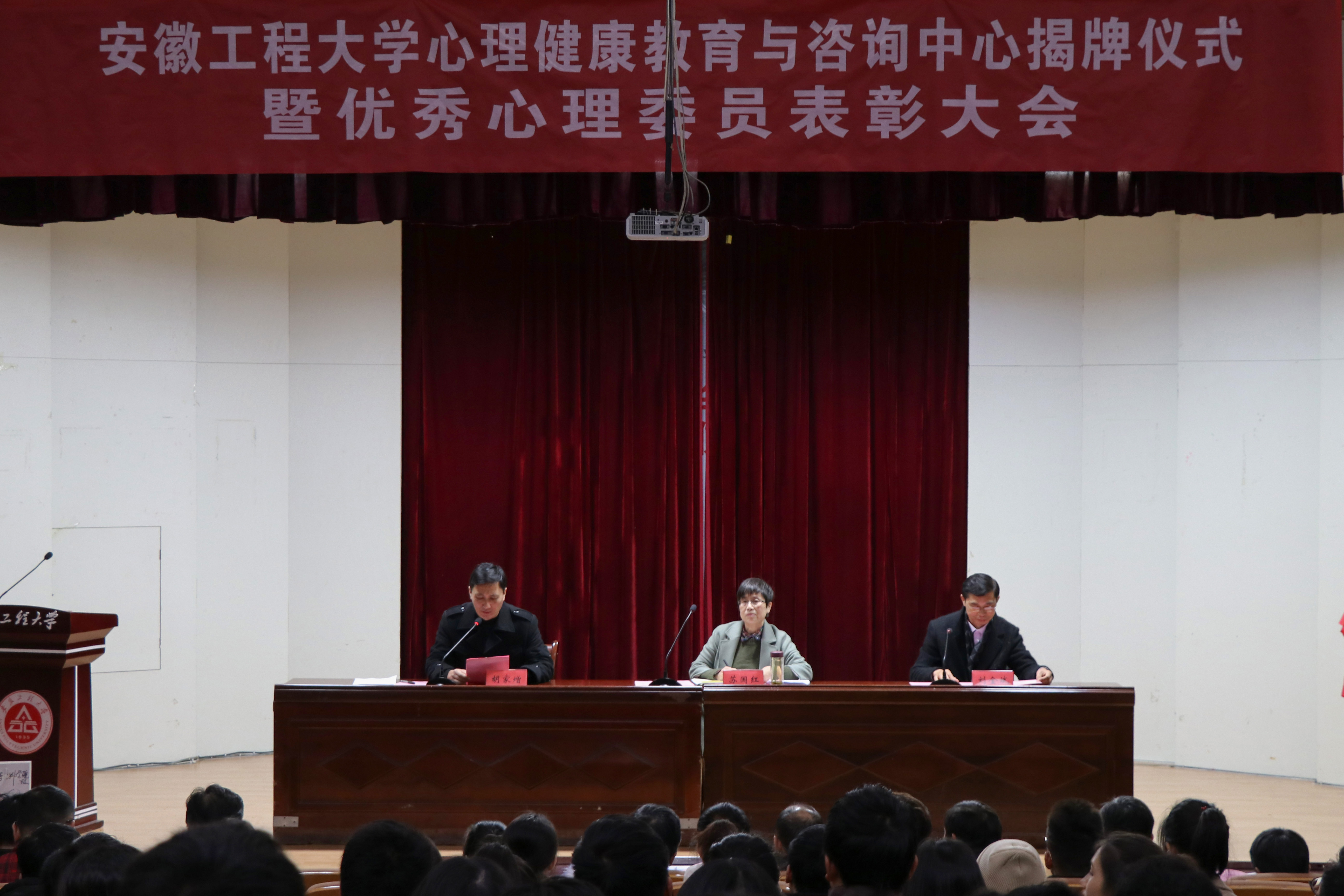 2018年12月5日,校心理健康教育与咨询中心揭牌仪式和优秀心理委员表彰大会在学术报告厅举行。校党委副书记苏国红,学生处处长刘金斌,各学院分管学生工作领导、心理健康工作联络员、辅导员代表,学院心理部、班级心理委员、心理互助小组等学生代表参加大会。学生处副处长胡家增主持会议。