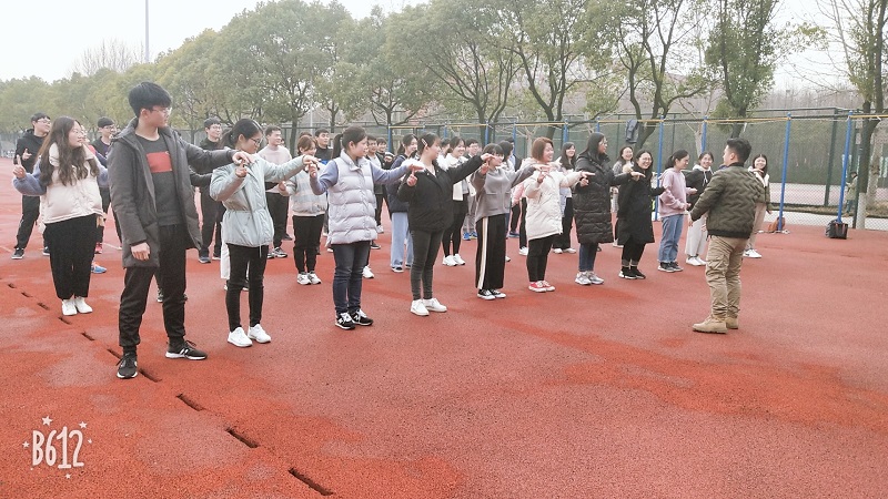 首先的热身运动,彼此按摩甚至摸耳垂都是能快速让人亲近的行为,一下子便拉近了我们的距离,然后的人体石头剪刀布,既锻炼了大家的思维能力,也培养了大家的团队意识。这样的游戏结束后,大家没有了刚到操场的拘谨,而都处于一个比较放松的状态,也为接下来的合作打下基础。