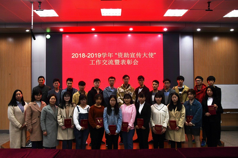 为展示我校“资助宣传大使”资助宣传成果,表彰优秀“资助宣传大使”,发挥受助学生政策传播和励志引领作用。我校于3月20日下午在5教117录播教室举行2018-2019学年 “资助宣传大使”工作交流暨表彰会。学生处副处长胡家增,资助管理科副科长张玉凤,各学院学生资助工作联络员,2018年国家奖学金、励志奖学金、助学金学生代表参加会议。