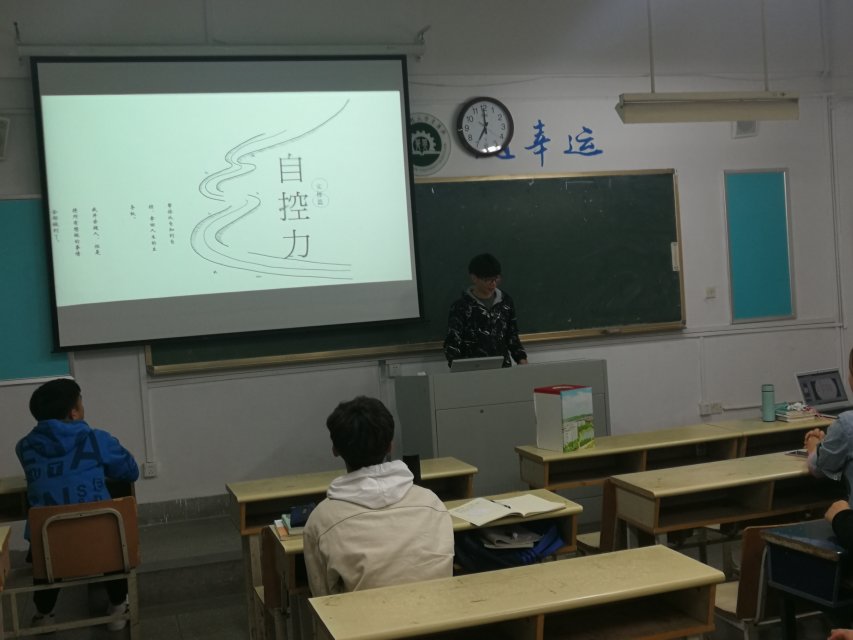 强忍着紧张,听着同学的分享。印象较深的是范明月分享的《人性的弱点》,这是我大一第一次从在图书馆借读的书,可爱的范同学的自信分享,算是带我读了第二遍,过程中收获颇丰,也认识了别人的哈姆雷特的独到之处。还有刘浩分享的《自控力》,自我管理类的书籍很吸引人的眼球,以及小帅哥自信而幽默的推荐,有机会希望读一读。轮到自己,真的是灾难(逊爆了)!全程没有抬过头,虽然也会紧张,但究其原因,我离不开稿子,或者说准备的不充足。回想起来,真的是一次惨痛的教训!