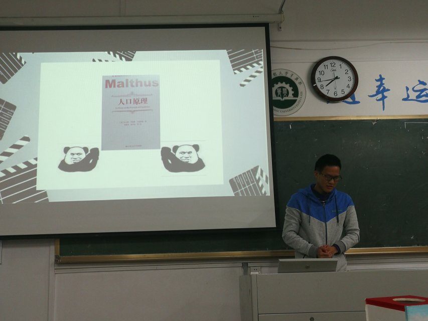 2019年4月15日,我参加了菁英班的第一次读书分享活动,我感到有些紧张。没想到第一次我就抽中了,我觉得第一次抽中也好,早点说过也算是了了一桩事吧!我带上了我精心制作的PPT。因为人口原理这本书光说内容的话有些枯燥,所以我在PPT里加入了一些略带搞笑的元素。我上台之后又有些紧张。这导致我说话也有点慌,或许还带有些家乡话的成分,这可能使得本来想“正经”说的部分听起来有些“岳云鹏”……但我还是努力用着普通话。唉,还是以前锻炼的太少了。真羡慕那些吐字清晰,嗓音明亮,自信满满的前几位同学。