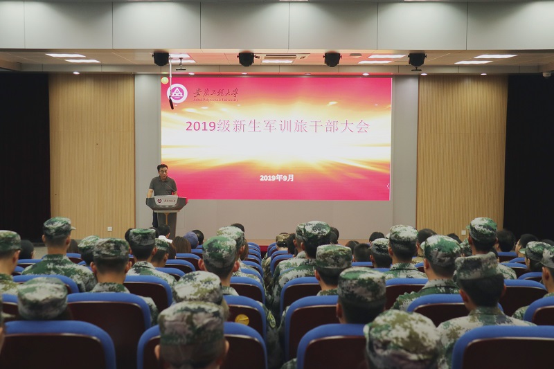 9月16日下午,2019级新生军训旅干部大会在5教117举行。校党委常委、副校长郑健,芜湖市鸠江区人武部部长时本庆,校学工部、武装部、校团委相关负责人,各学院分管学生工作领导,全体新生辅导员,全体教官参加。大会由学工部部长刘金斌主持。